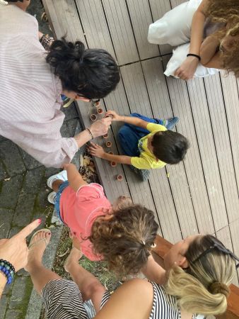 Dove comincia la felicità è l’albo illustrato che ha ispirato la nostra giornata! La felicità l’abbiamo trovata nei sorrisi, nei balli, nei giochi, nei vuoti curiosi dei bambini, nelle mani che si stringono in un girotondo, nella musica e nelle parole, raccontate e ascoltate; la felicità è in un piccolo vasetto con un piccolo semino che ogni bambino ha portato via con sé, perché la felicità va custodita, attesa, cercata! Una festa che si è conclusa con una merenda condivisa con genitori, nonni e bambini tra brindisi e risate. Un grazie sincero a tutti per aver reso speciale questo momento di comunità. Un grazie a tutti quelli che credono nella felicità e nell’associazione Oltrelamusica.